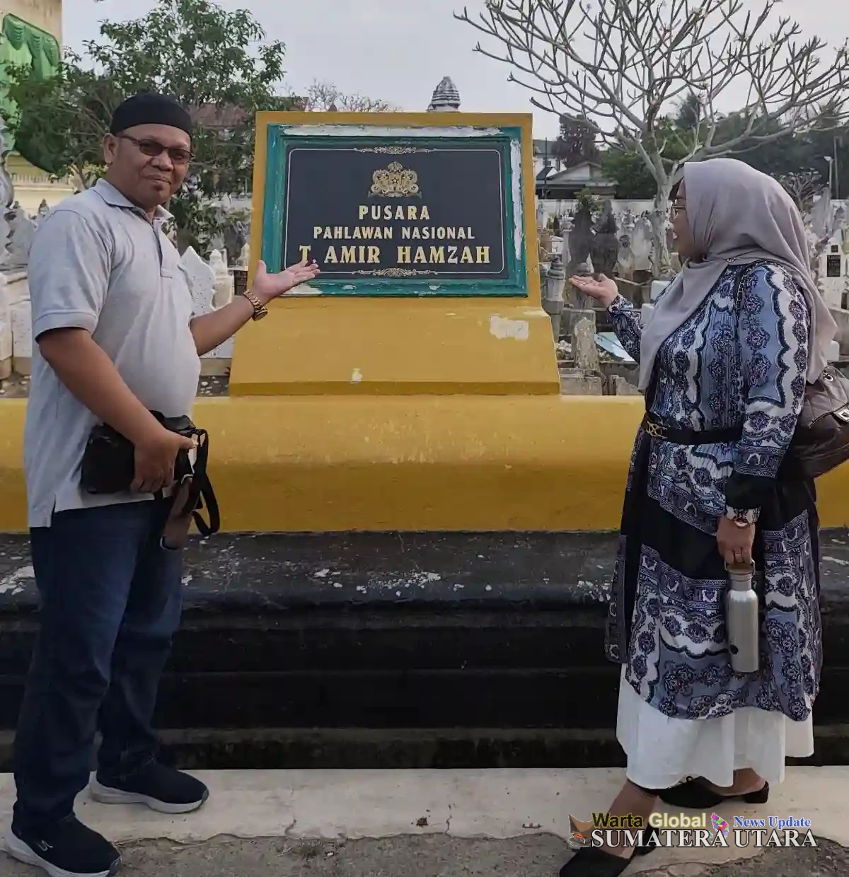 Setiap keluarga berkesempatan mengabdikan momen penting itu salah satu nya keluarga Ibu Marni pun bersama keluarga juga berfoto di Pusara Pahlawan Nasional T. Amir Hamzah di lingkungan Mesjid Azizi Tanjung Pura.